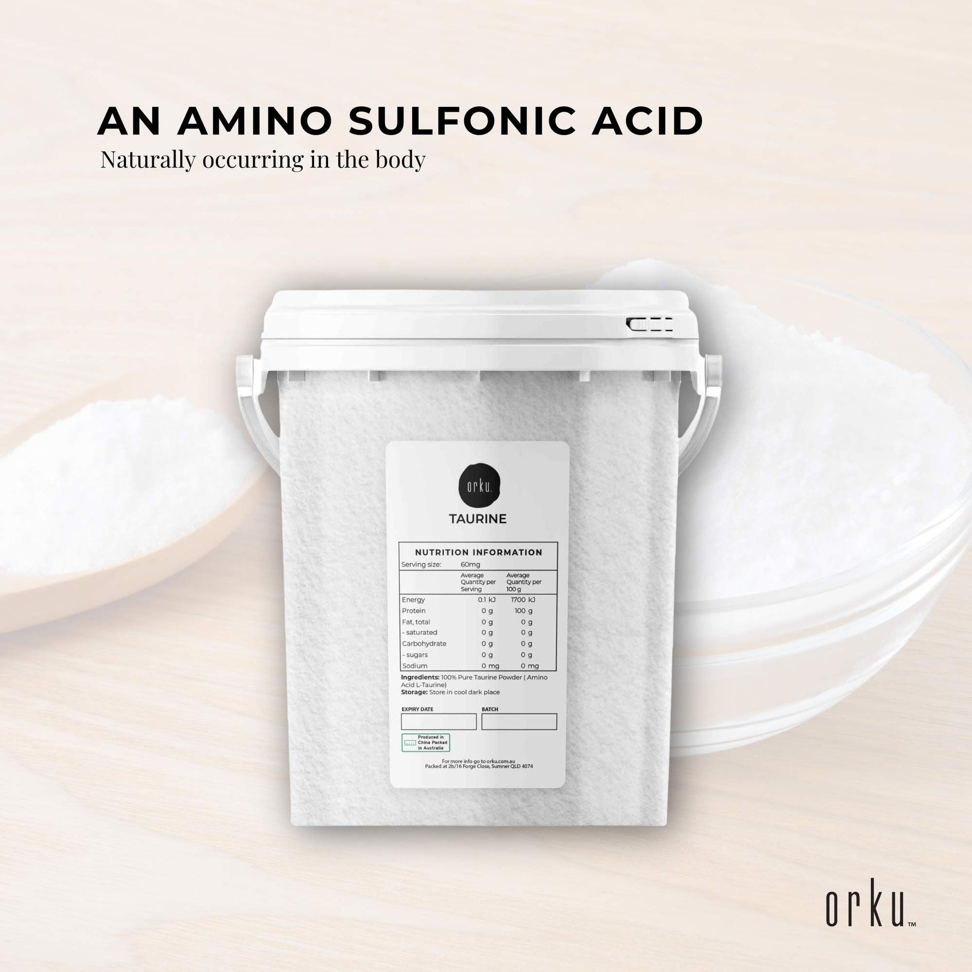 - 1.3kg Taurine Powder in resealable food grade bucket.