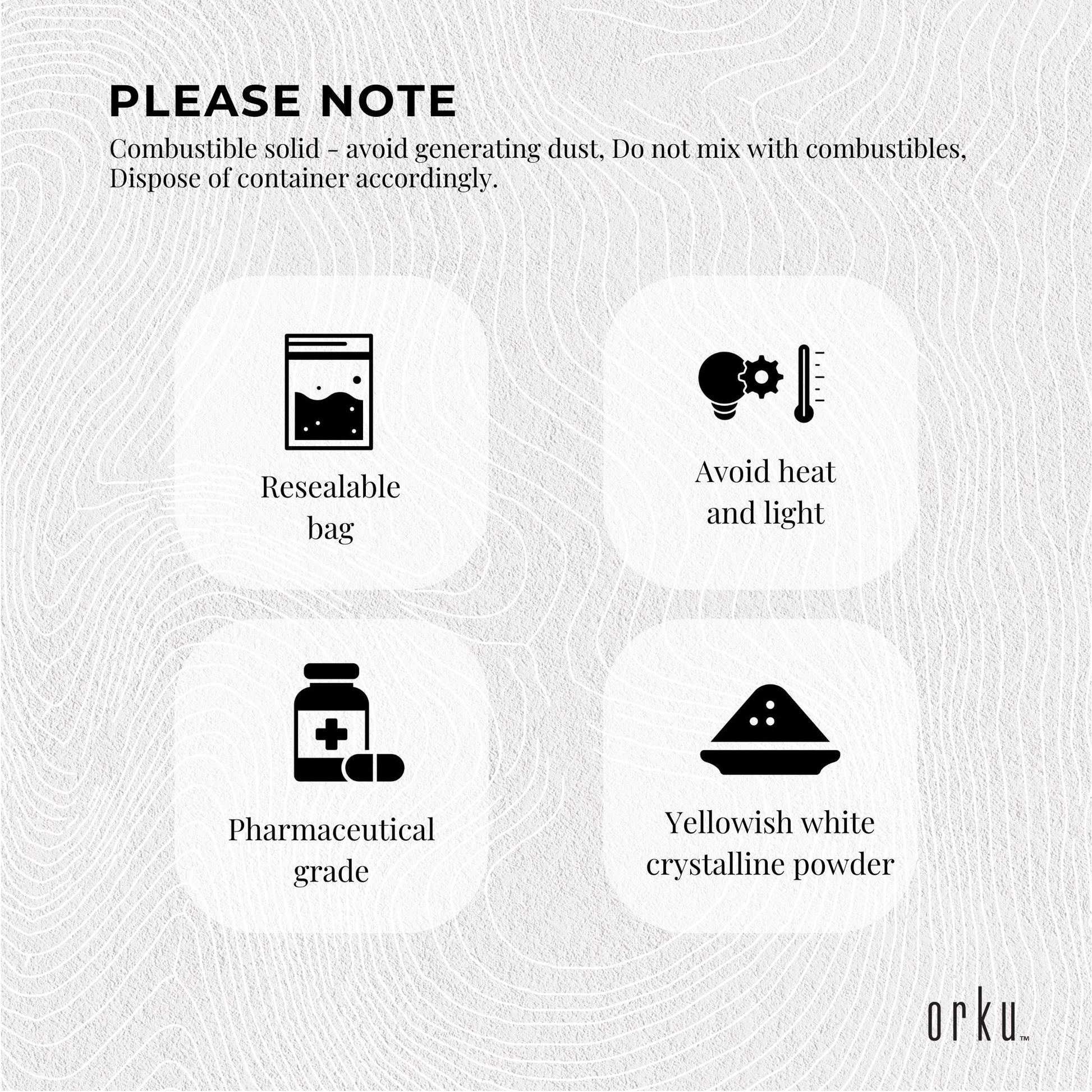 - Colour: Yellowish white crystalline powder