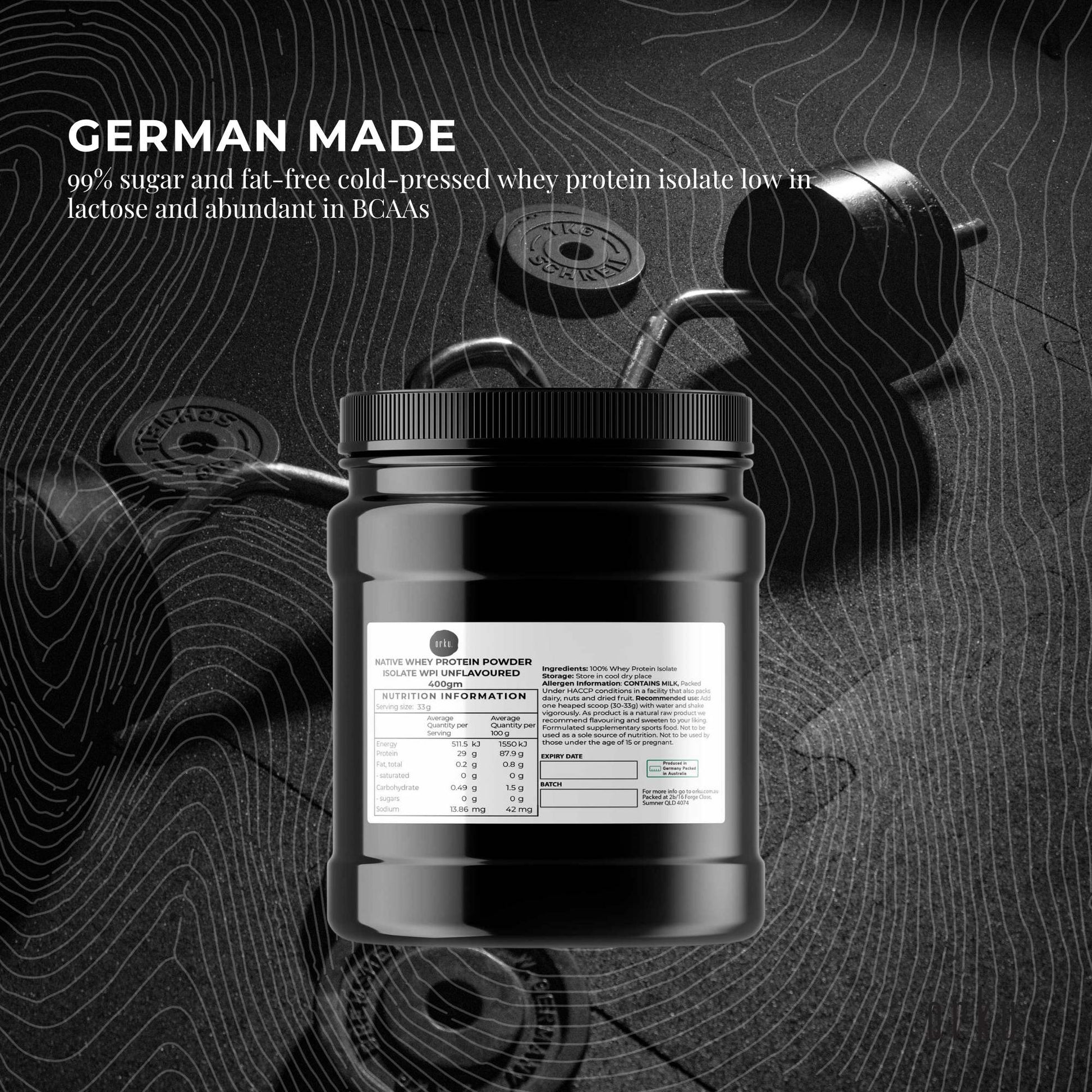 Our Australian made Whey Protein Isolate is 99% sugar and fat-free cold-pressed whey protein isolate. No added sugars, low in lactose and abundant in BCAAs make it an excellent supplement to help recover from exercise, build toned muscle, and promote overall health and wellbeing.